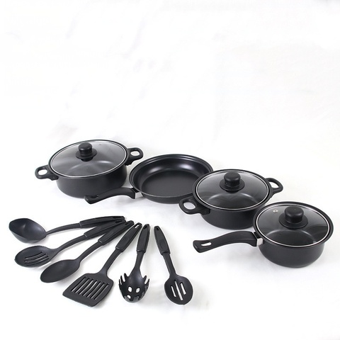 Nhà Máy Bán buôn 13 cái Đen gang đồ dùng nhà bếp công cụ nấu ăn không dính Cookware Set với chậu và chảo Set và nắp