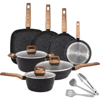 공장 도매 13 조각 블랙 주철 주방 용품 조리 도구 냄비와 팬 세트 및 뚜껑이있는 비 스틱 조리기구 세트