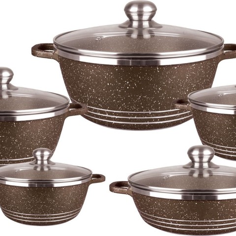 화강암 조리기구 세트 그레이 10PCS 비 스틱 다이 캐스팅 알루미늄 유도 하단 가제트 키트 내구성 식기 세척기 안전 조리기구 세트